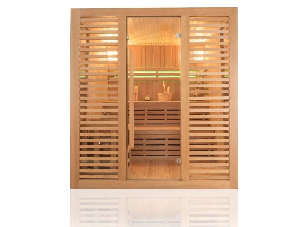 Elegantná domáca tradičná fínska sauna Luonto 5 je navrhnutá pre 5 osôb a vyrobená z kanadského smreka. Táto sauna sa hodí do interiéru rodinného domu aj bytu.