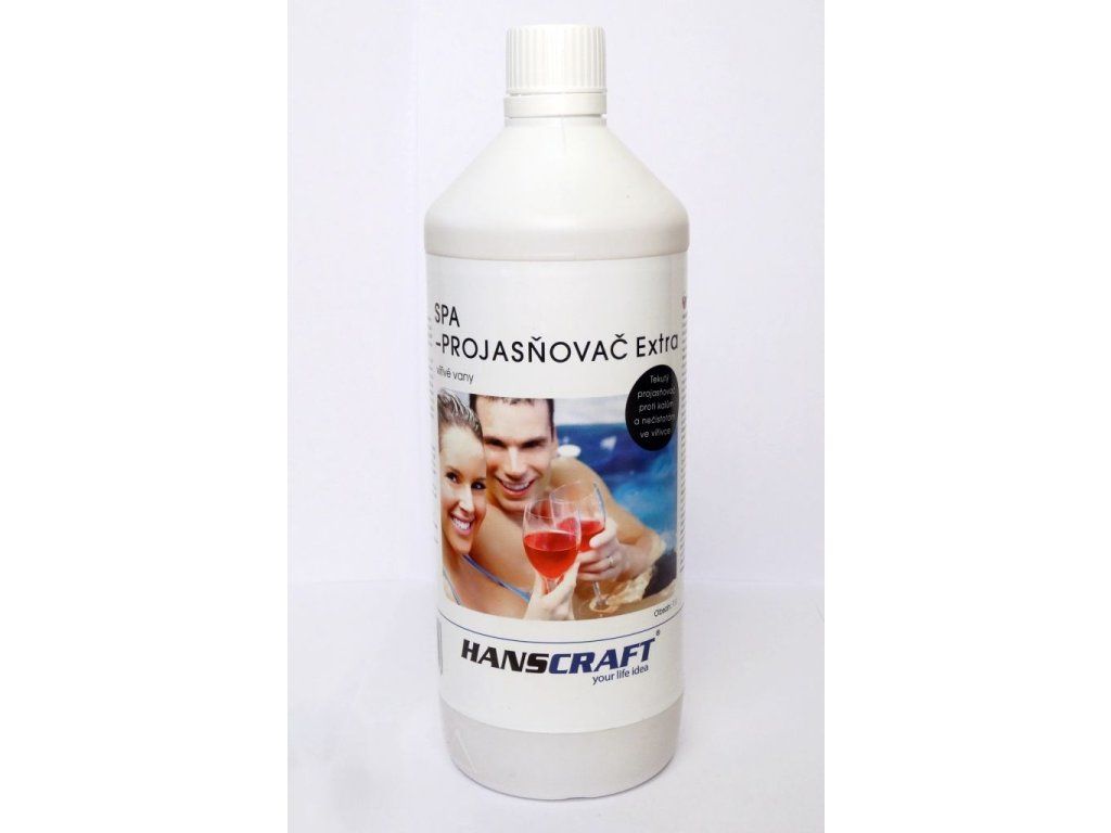 HANSCRAFT SPA - PREJASŇOVAČ Extra Prípravok zabezpečuje priezračne čistú vodu a likviduje mikroskopické nečistoty. Použitie prípravku: Do vody sa zanášajú alebo sú prítomné mikroskopické (koloidné) nečistoty, ktoré zhoršujú hygienickú kvalitu vody a jej priezračný vzhľad. Častice obaľujú baktérie a vírusy a tie lepšie odolávajú dezinfekcii. Flokuláciou (prevedením nečistôt do separovateľnej podoby) sa z vody za pomoci sedimentácie a filtrácie odstraňujú uvedené koloidné častice a tým dochádza k vyčíreniu vody vo vírivke. Spôsob použitia: Prípravok sa používa preventívne, aby nedošlo k zakaleniu vody alebo na odstránenie už vzniknutých nečistôt. Po vytvorení väčších zhlukov ich možno odfiltrovať alebo odsať zo dna vírivky. Dávkovanie: Pri zakalení vody 3-6 ml / 1 m3 vody.