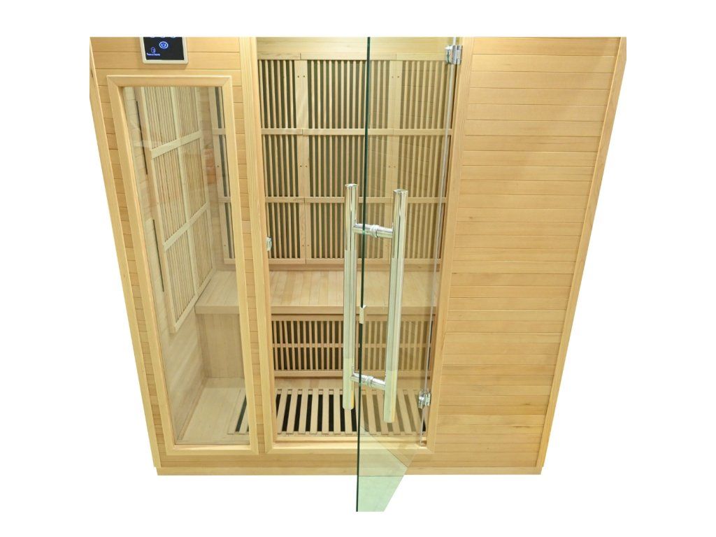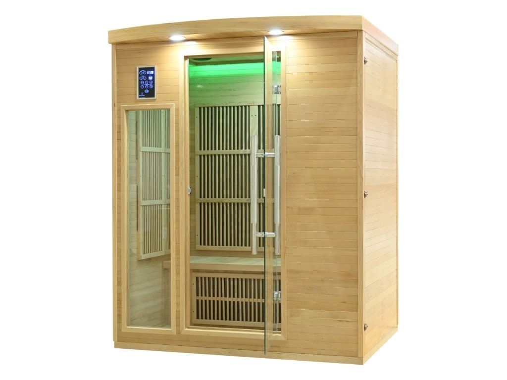 Do domácej infrasauny Apollon 3 do prednej sauny od popredného výrobcu FRANCE SAUNA sa zmestia až tri osoby a jej obloženie je vyrobené z kanadského jedľovca.Pobyt v infrasaune má množstvo pozitívnych zdravotných a kozmetických účinkov. Saunovanie má blahodarný vplyv na celý kardiovaskulárny systém, odstraňuje bolesti chrbta, kĺbov a končatín, posilňuje imunitný systém, odstraňuje alebo predchádza celulitíde a zlepšuje kvalitu pleti.
