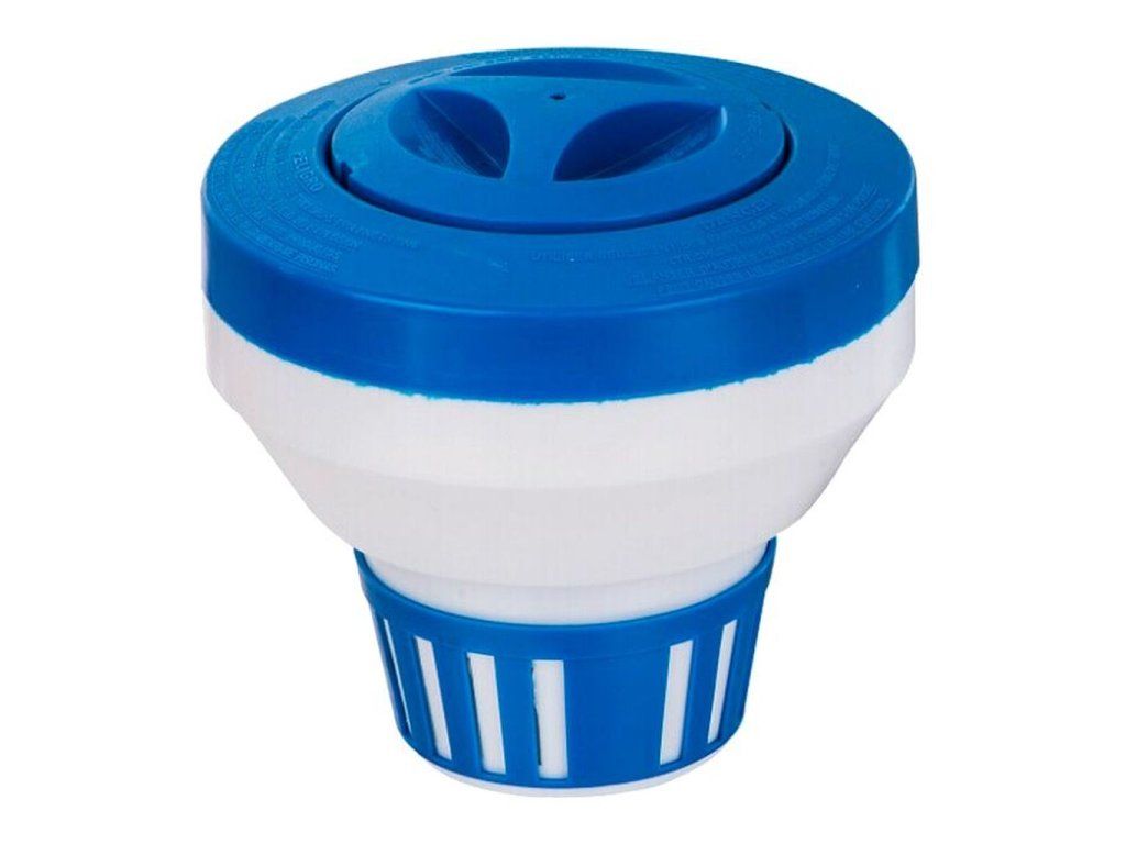 Bazénový plavák na dávkovanie tabliet, vyrobený z kvalitného plastu modrej a bielej farby, ocenia najmä majitelia stredných a väčších domácich bazénov. Umožňuje pohodlné dávkovanie tabletových prípravkov bazénovej chémie, či už ide o bazénové tablety na báze aktívneho kyslíka alebo chlóru. Tento plavák je primárne určený na dávkovanie bazénových tabliet s hmotnosťou 200 g, zvyčajne nazývaných MAXI tablety. Na vrchnej časti plaváka je umiestnené vyberateľné plastové viečko s prelismi pre lepšie uchopenie, otváranie a zatváranie plaváka je teda veľmi jednoduché. Priestor, do ktorého sa vkladajú tablety, je opatrený úzkymi obdĺžnikovými otvormi, krytými modrou plastovou posuvnou mriežkou, ktorej polohou môžete regulovať rýchlosť rozpúšťania tablety.