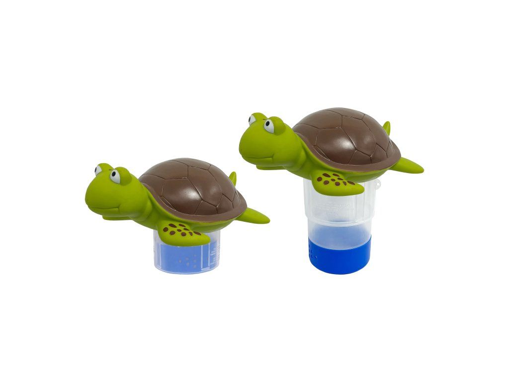 Dávkovací plavák na presné a dlhodobé dávkovanie tabliet s možnosťou regulácie dávky chlórových alebo kyslíkových tabletovaných prípravkov s možnosťou nastavenia dávky. Plavák v tvare korytnačky ozdobí váš bazén.