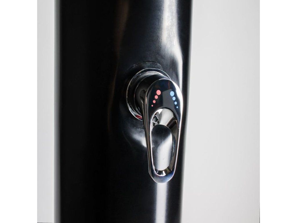 Bazénové solárne sprchy COMFORT ALU slúžia na pohodlné osvieženie tela pred aj po kúpaní v záhradnom bazéne či jazierku aj pri pobyte na slnečnej záhrade. Rozvody vody v tele solárnej sprchy slúžia ako zásobník teplej vody. Solárna sprcha je vyrobená z kvalitnej a odolnej kovovej zliatiny s vysokým obsahom hliníka s povrchovou úpravou v čiernej farbe, ktorá podstatnou mierou napomáha absorpcii tepelnej slnečnej energie. Voda je v tele solárnej sprchy rozvádzaná zdola od napúšťacieho ventilu nahor k sprchovej ružici. Dole na tele sprchy je umiestnený vypúšťací ventil. Pomocou pákovej batérie, ktorá sa nachádza približne v polovici výšky solárnej sprchy, je možné plynule regulovať teplotu vody kedykoľvek počas sprchovania. Možné pohodlie a komfort zvyšuje veľká pohyblivá sprchová ružica (priemer 20 cm). Obzvlášť cenenou funkciou je možnosť oplachu nôh od ulpievajúcich nečistôt studenou vodou, čo umožňuje kohútik umiestnený zhruba v dolnej tretine výšky solárnej sprchy COMFORT ALU.