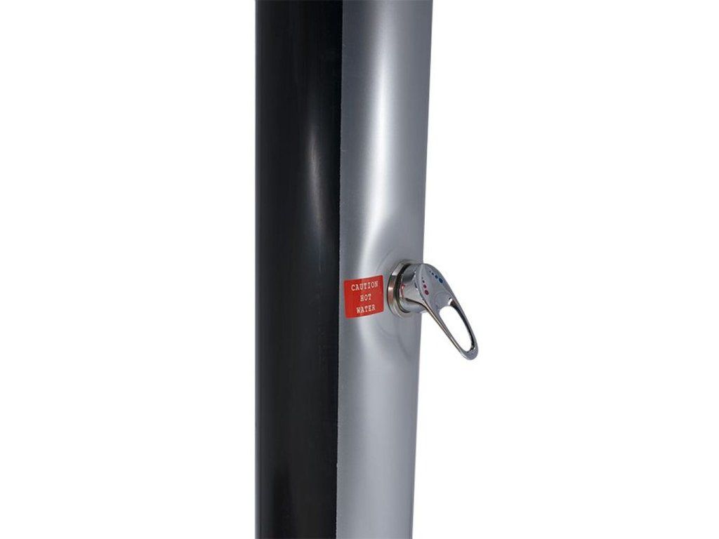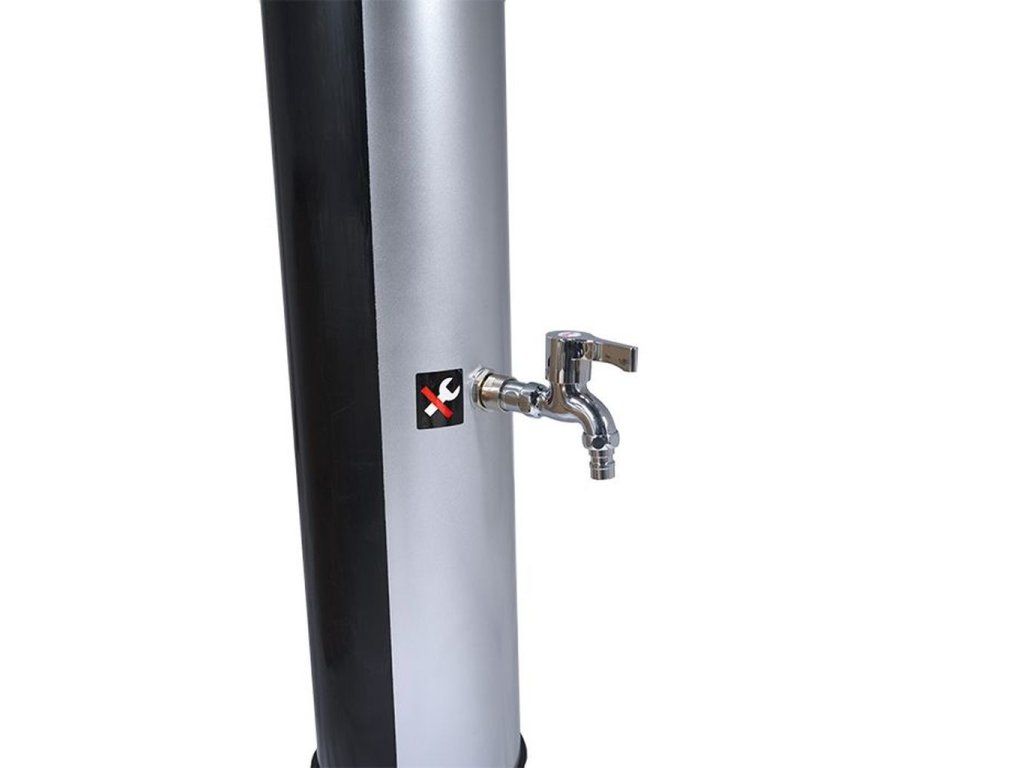 Bazénová solárna sprcha COMFORT SILVER slúži na pohodlné osvieženie tela pred aj po kúpaní v záhradnom bazéne či jazierku, aj počas pobytu na slnečnej záhrade. Rozvody vody v tele solárnej sprchy slúžia ako zásobník teplej vody. Solárna sprcha je vyrobená z kvalitného a odolného plastového materiálu v čiernej farbe (sprcha COMFORT) alebo so striebornou potlačou z prednej strany (COMFORT SILVER), ktorá vo veľkej miere napomáha zachytávaniu tepelnej slnečnej energie. Voda je v tele solárnej sprchy rozvádzaná zdola od napúšťacej koncovky, umožňujúcej pripojenie solárnej sprchy k vodovodnej sieti cez hadicovú rýchlospojku a záhradnú hadicu, smerom nahor k sprchovej ružici. Pomocou pákovej batérie, ktorá sa nachádza približne v polovici výšky solárnej sprchy, je možné plynule regulovať teplotu vody kedykoľvek počas sprchovania. Možné pohodlie a komfort zvyšuje veľká pohyblivá sprchová ružica (priemer 20 cm). Obzvlášť cenenou funkciou je možnosť oplachu nôh od ulpievajúcich nečistôt studenou vodou, čo umožňuje kohútik v dolnej časti tela solárnej sprchy.