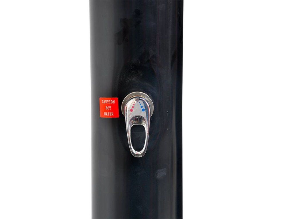 Vďaka kvalitnému čiernemu plastu, z ktorého je vyrobené telo solárnej sprchy, a plastovým potrubným rozvodom vo vnútri dochádza počas horúcich letných dní s vysokou intenzitou slnečného žiarenia k pomerne rýchlemu ohrevu vody v tele sprchy. Teplota samotnej teplej vody môže dosahovať 60 aj 70°C. Na začiatku sprchovania je teda potrebné najprv pomocou pákovej batérie púšťať studenú vodu a do nej zmenou polohy pákovej batérie postupne teplú vodu pridávať.