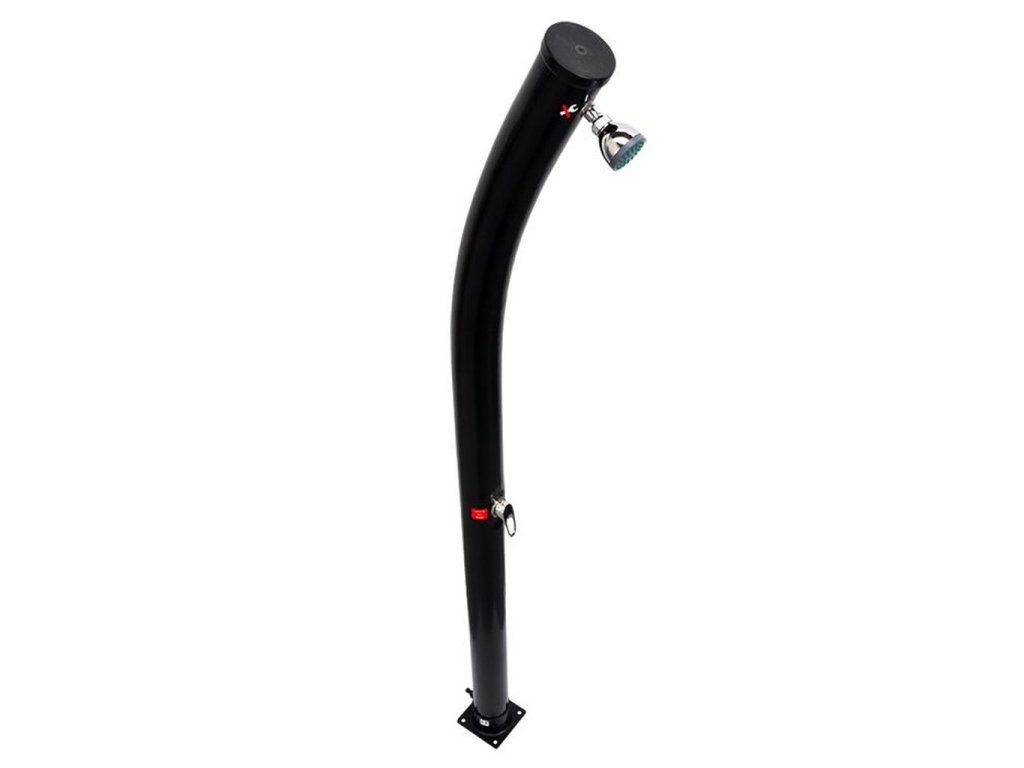 Bazénová solárna sprcha FREEDOM slúži na pohodlné osvieženie tela pred aj po kúpaní v záhradnom bazéne či jazierku, aj pri pobyte na slnkom zaliatej záhrade. Rozvody vody v tele solárnej sprchy slúžia ako zásobník teplej vody. Solárna sprcha je vyrobená z kvalitného a odolného plastového materiálu v čiernej farbe, ktorá podstatnou mierou napomáha zachytávaniu tepelnej slnečnej energie. Voda je v tele solárnej sprchy rozvádzaná zdola od napúšťacej koncovky, umožňujúcej pripojenie solárnej sprchy k vodovodnej sieti cez hadicovú rýchlospojku a záhradnú hadicu, smerom nahor k sprchovej ružici. Pomocou pákovej batérie, ktorá sa nachádza približne v polovici výšky solárnej sprchy, je možné plynule regulovať teplotu vody kedykoľvek počas sprchovania. Možné pohodlie a komfort pri sprchovaní výrazne zvyšuje aj mierny náklon tela solárnej sprchy smerom k sprchujúcemu sa v hornej časti v priestore stredne veľkej sprchovej ružice (priemer 7 cm).