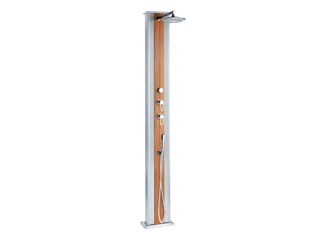 Solárna sprcha DADA patrí k veľmi obľúbeným modelom, ktoré majú elegantný dizajn a sú ozdobou záhrady. Tento nový model má dostatočný zásobník na vodu s objemom 40 litrov. Vzhľad sprchy pôsobí jedinečným dojmom. Kombinuje nehrdzavejúcu oceľ s prvkami dreva. Súčasťou je dostatočne veľká sprchová hlavica na oplach po aj pred kúpaním vo vírivke či bazéne. Nepostrádateľná je aj sprcha na nohy, ktorá zmyje piesok, trávu a ďalšie nečistoty. Sprcha je vyrobená z hliníka.