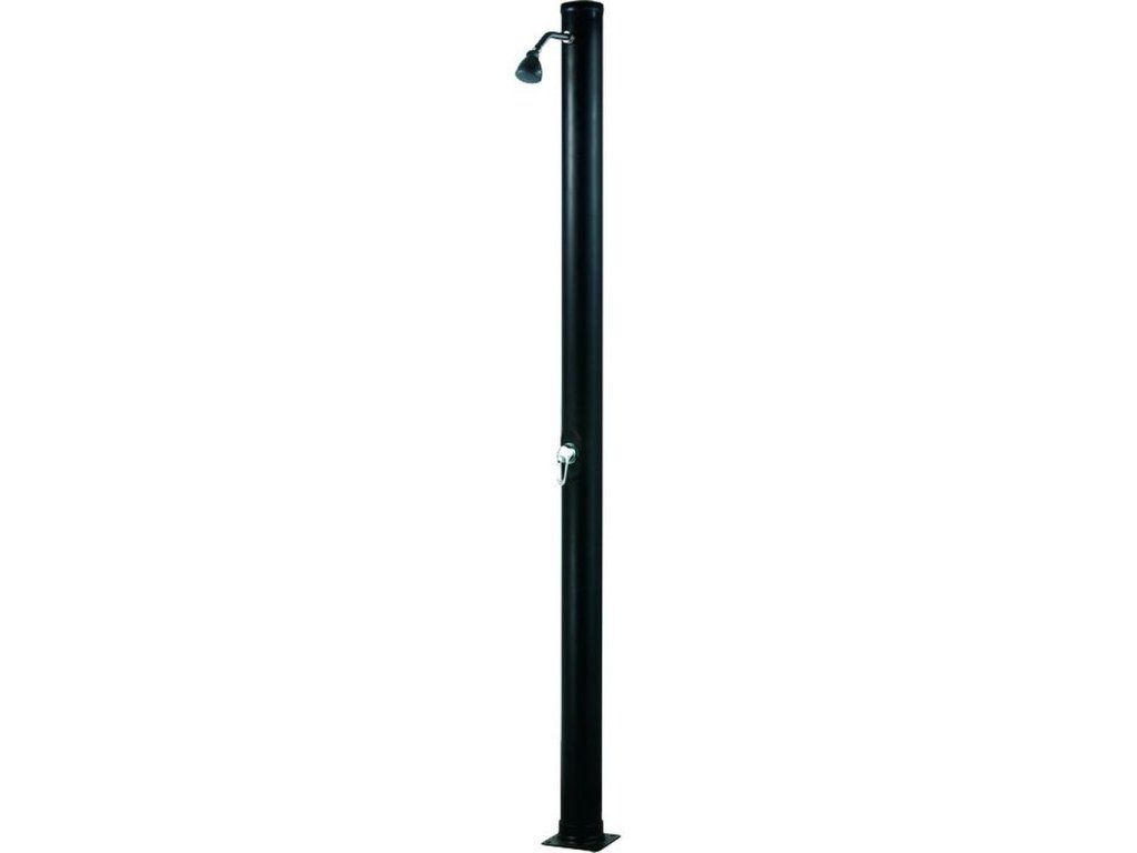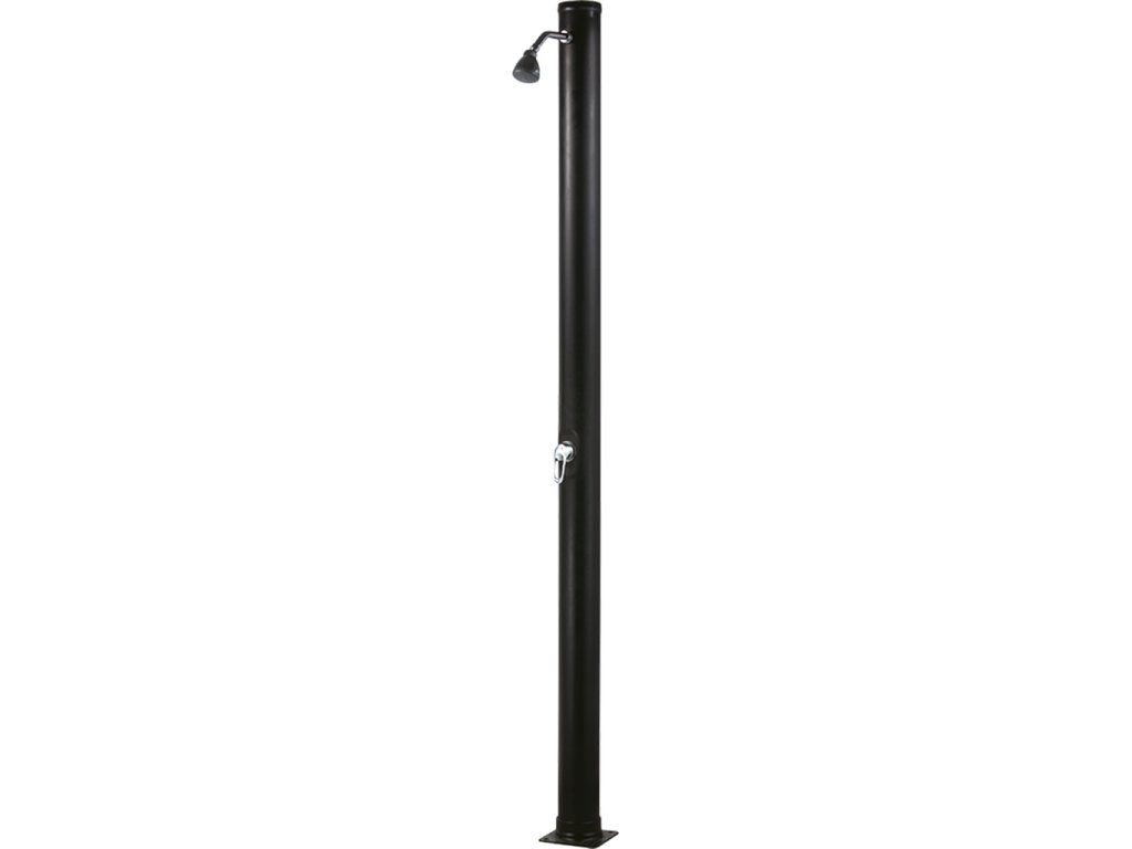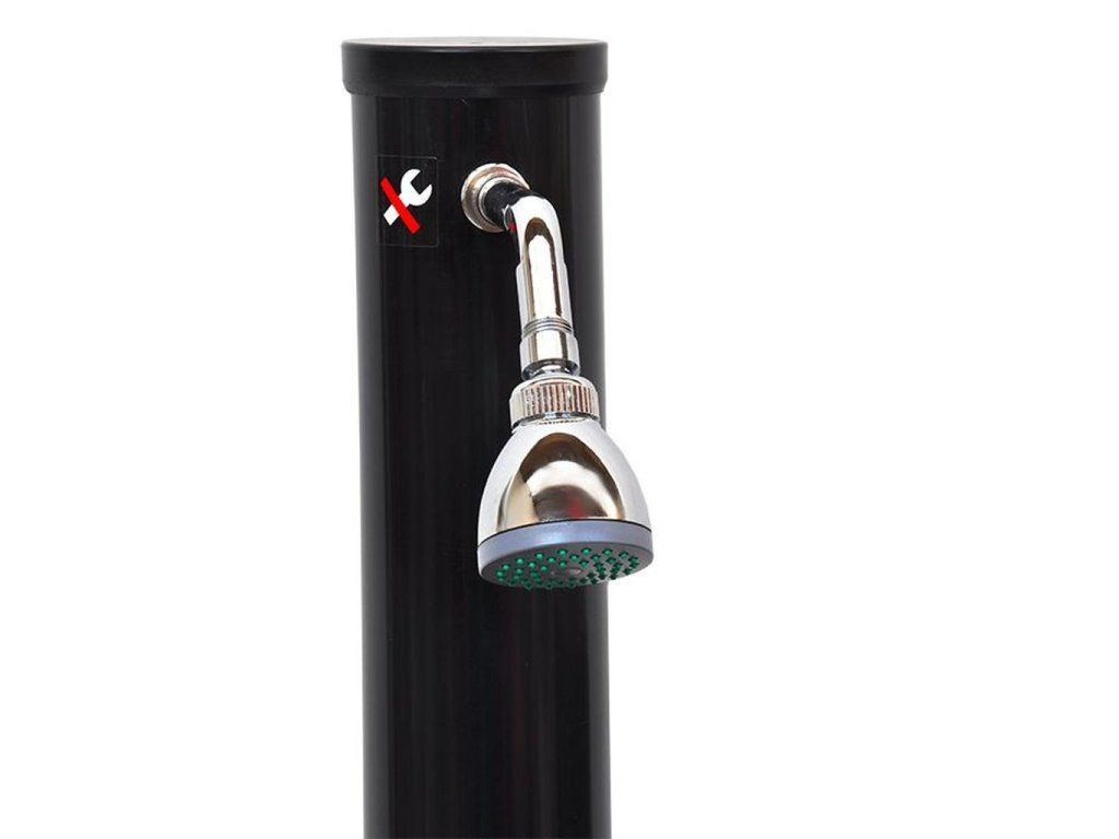 Bazénová solárna sprcha TROPIC je tou správnou voľbou na očistu tela v letných dňoch pri akejkoľvek činnosti na slnkom zaliatej záhrade, či už sa vášnivo venujete záhradkárčeniu alebo len tak leňošíte pod horúcimi slnečnými lúčmi. Ako všetky vonkajšie solárne sprchy je aj bazénová sprcha TROPIC veľkým pomocníkom pri udržiavaní optimálnej kvality bazénovej vody v domácom záhradnom bazéne, pretože v prípade jej pravidelného používania pred vstupom do bazéna významným spôsobom eliminujete množstvo nežiaducich nečistôt, vnášaných do bazénovej vody na pokožke kúpajúcich sa. V tele solárnej sprchy, vyrobenom z kvalitného čierneho plastu, sú umiestnené plastové rozvody vody, fungujúce ako zásobník teplej vody na telesnú očistu. Vďaka čiernej farbe dokáže materiál, z ktorého je sprcha vyrobená, maximálnym spôsobom zachytávať energiu slnečného žiarenia a ohrievať vodu v plastových rozvodoch. V dolnej časti sprchy je umiestnená vstupná napúšťacia koncovka, umožňujúca pripojenie solárnej sprchy k vodovodnej sieti cez hadicovú rýchlospojku a záhradnú hadicu. Plastové rúrky vo vnútri tela solárnej sprchy, v ktorých dochádza k ohrevu vody, vedú napúšťanú vodu nahor k sprchovej ružici s priemerom 7 cm, vyrobenejz kombinácie kovu a plastu s veľkým množstvom drobných otvorov. Na reguláciu teploty vody na sprchovanie slúži páková batéria, umiestnená zhruba v polovici výšky solárnej sprchy.