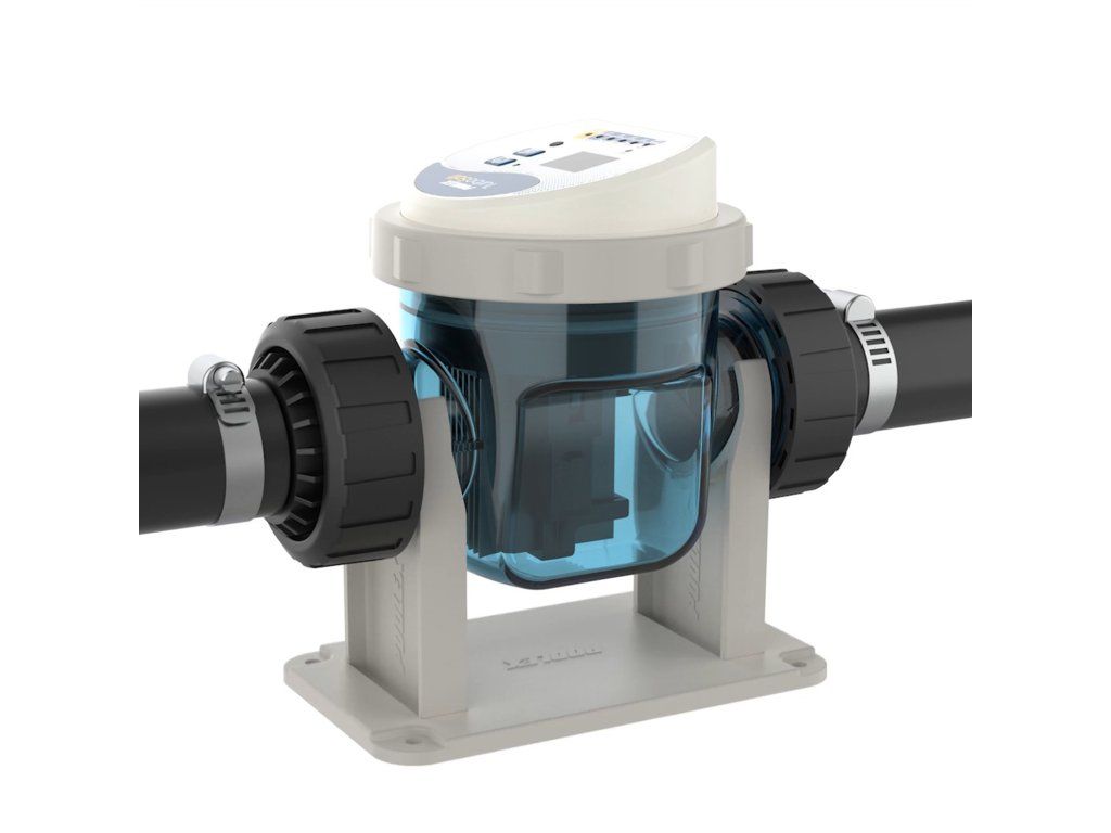 Dostupné pre bazény do 30m3. Turbo Salt sa dodáva s pripojením 50 mm (1' 1/2) a adaptérmi 32/38 mm. Vďaka jeho upevneniu na stenu alebo podlahu sa tento elektrolyzér prispôsobí všetkým typom filtrácie a jeho ultra-kompaktná veľkosť umožňuje inštaláciu aj v najmenších technických miestnostiach.