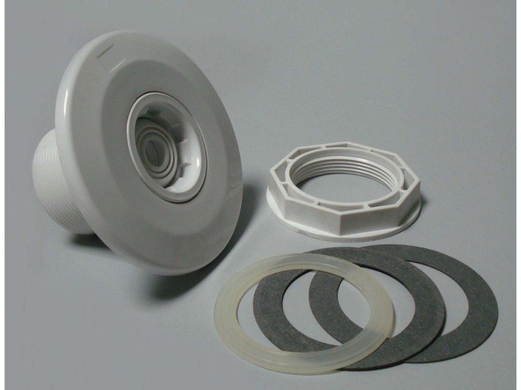 Plochá cirkulačná tryska vyrobená z bieleho plastu ABS vhodná pre fóliové a prefabrikované bazény. Plochá bazénová tryska HANSCRAFT MULTIFLOW je vyrobená z bieleho ABS plastu a je určená predovšetkým pre fóliové alebo prefabrikované bazény (betónové bazény, polypropylénové bazény, plastové bazény, laminátové bazény). Tryska MULTIFLOW sa dodáva vrátane silikónového tesnenia a deliacich segmentov. Pripája sa pomocou vnútorného lepenia s priemerom 50mm na klasické bazénové PVC potrubie. Vonkajšia strana obsahuje závit 2“, na ktorý sa nasadí prevlečná matica, ktorou trysku a jej tesnenie stiahneme. Tryska MULTIFLOW sa do bazéna osádza z protiľahlej strany, kde je nainštalovaný skimmer, a cca 10cm pod vodnú hladinu, čo by mala byť spodná strana skimmera. Na tryske je z vnútornej strany bazéna vytvorený aj závit pre zátku trysky alebo pre pripojenie masážnej hadice. Je plne regulovateľná, teda môžete nastaviť smer prúdenia vody, a na oku trysky (stredová guľôčka) možno regulovať aj požadovanú rýchlosť prietoku. Bazénové trysky slúžia na obeh – cirkuláciu vody v bazéne, keď sa skimmerom voda z hladiny nasaje, ďalej pokračuje do filtrácie cez cirkulačné čerpadlo a späť sa vracia čistá, práve cirkulačnou tryskou.